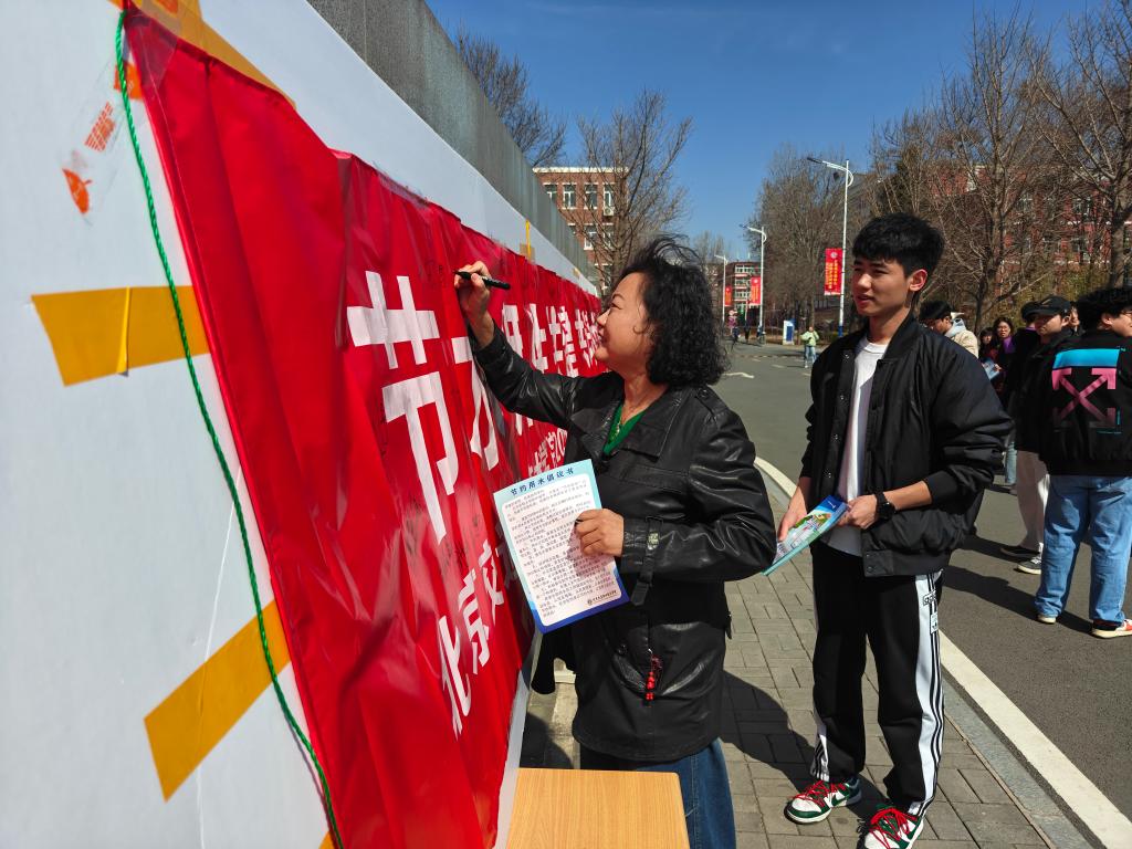 活动现场,志愿者们通过现场讲解、发放宣传手册等方式,向师生们介绍了“世界水日”与“中国水周”的相关知识。学习节水知识后,师生们郑重有序地在“节水师生共建·共谱世纪画卷”主题条幅上签名,从认知走向行动,传递着对绿色生活方式的认同与践行。