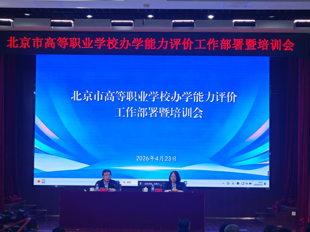 4月23日下午,北京市高等职业学校办学能力评价工作部署暨培训会在北京财贸职业学院召开。会议采取“线上+线下”相结合的形式进行,旨在深入贯彻落实教育部关于高职办学能力评价的工作部署,全面解读北京市评价方案,明确工作要求。我校党委高度重视,严格按照会议要求,在办公楼二层会议室设立分会场,通过腾讯会议实时连线主会场。我校党委副书记、院长刘建新等校领导及相关部门负责人分别在主会场和分会场参加了会议。
