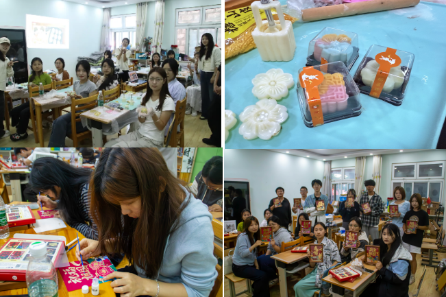 与热闹的室外游园会不同,“室内 DIY 工坊” 则充满了温馨与浪漫。活动分6场进行,在心理中心老师和心协志愿者的指导下,同学们沉浸式体验了手工月饼制作和国庆主题金箔画创作,以及oh卡牌自我探索活动。