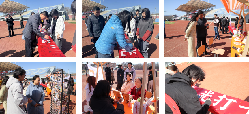 党委副书记、院长刘建新,副院长李大泳、罗春红、王颖等校领导及相关部门负责人亲临现场,共同在活动横幅上签字启幕。活动中,心理健康协会成员向王颖副院长介绍过往心理活动开展情况。校领导一行听取了心理健康教育中心主任张梦元关于本次打卡活动的汇报,对活动筹备及首日运行情况给予充分肯定并提出指导意见。刘建新院长强调,要坚持以学生身心健康为中心,把心理健康教育做细、做实、做活,丰富活动形式、对接学生需求,完善常态化心理育人体系,提升育人实效。