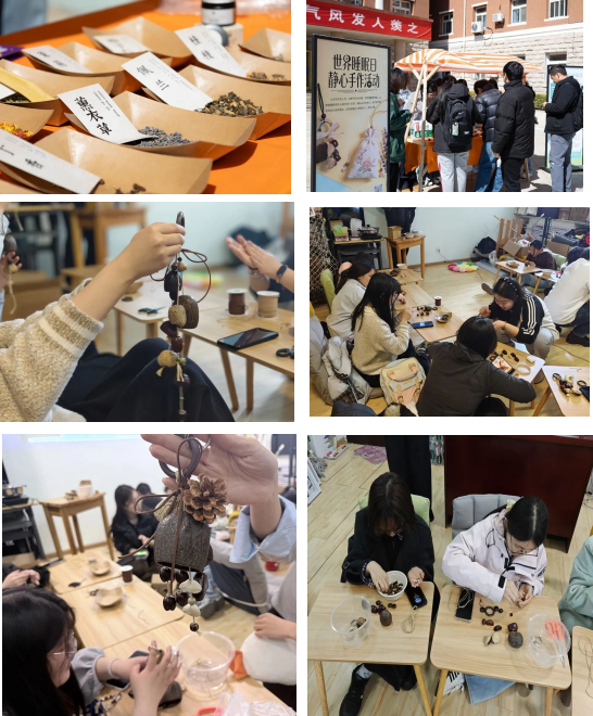 活动采取室内外相结合的形式开展。3月18日,在教一楼小广场举办了“遇见睡眠的香气”宣传活动,现场设置了助眠芳香体验区、中药香包DIY制作区及《匹兹堡睡眠质量量表》填写区,让师生们在动手实践中感受传统草本文化的独特魅力,评估自身睡眠状况。3月19日至20日,在教一楼102教室开展了4场“听见睡眠的声音”室内主题活动,包含静心冥想、果壳风铃DIY制作及睡眠科普讲解等环节,参与者们在创意创作中解锁了多种科学助眠的方法。