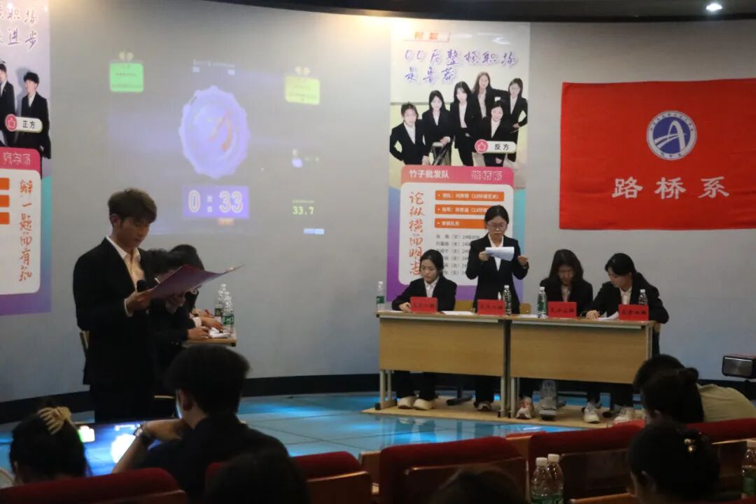“辩一题而有知·论纵横而明志”。6月12日下午15:30,北京交通职业技术学院第十五届辩论赛决赛在教四楼导游实训室隆重举行,近200名师生齐聚一堂,共同见证了这场思维与口才的巅峰对决。本次赛事由学院团委主办,院学习部与辩论社承办,自4月启动以来,历经初赛、复赛、半决赛、季军赛及决赛五个阶段,累计28场对决。全院8支代表队过五关斩六将,最终汽车系“你管我对不队”与路桥系“竹子批发队”脱颖而出,会师决赛。