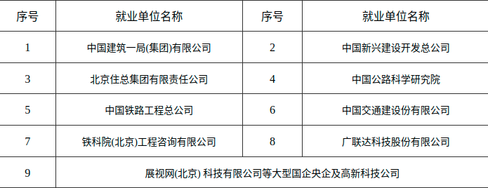 三、主要就业单位