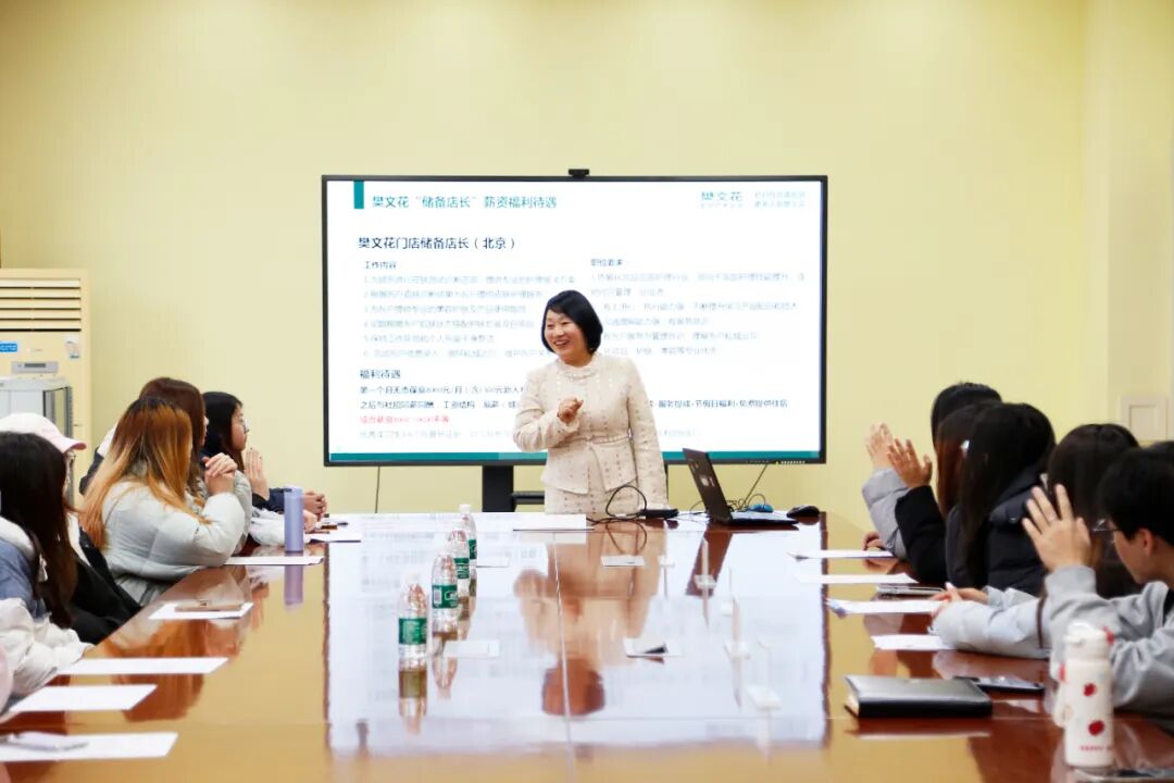 为进一步促进校企合作,企业面向化妆品经营与管理专业学生开展了宣讲活动,全面展示企业文化、岗位需求与职业发展路径,并现场组织一对一面试。